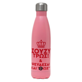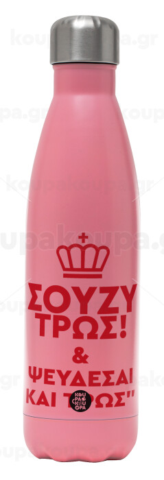Σούζυ και ψεύδεσαι και τρως, Metal mug thermos Pink Mat (Stainless steel), double wall, 500ml