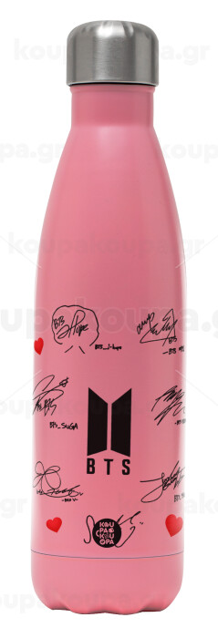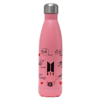 BTS signatures, Metal mug thermos Pink Mat (Stainless steel), double wall, 500ml