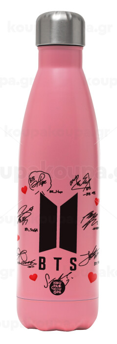 BTS signs, Metal mug thermos Pink Mat (Stainless steel), double wall, 500ml