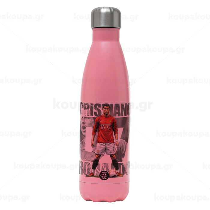 Cristiano Ronaldo (Κριστιάνο Ρονάλντο), Metal mug thermos Pink Mat (Stainless steel), double wall, 500ml