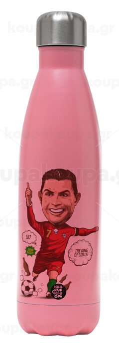 Cristiano Ronaldo, Metal mug thermos Pink Mat (Stainless steel), double wall, 500ml