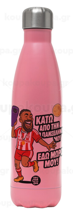 Ροντινέι, "ΚΑΤΩ ΑΠΟ ΤΗΝ ΠΑΝΣΕΛΗΝΟ ΜΟΥ!", Metal mug thermos Pink Mat (Stainless steel), double wall, 500ml