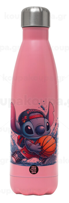 Stitch Basketball, Metal mug thermos Pink Mat (Stainless steel), double wall, 500ml