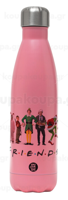 Christmas FRIENDS, Metal mug thermos Pink Mat (Stainless steel), double wall, 500ml