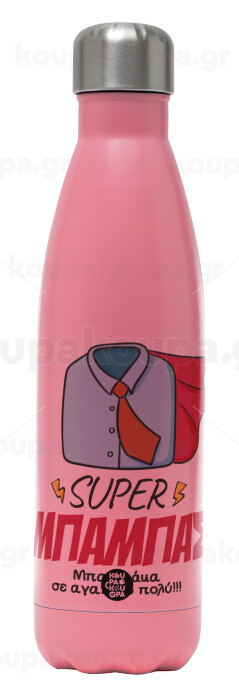 SUPER ΜΠΑΜΠΑΣ, Metal mug thermos Pink Mat (Stainless steel), double wall, 500ml