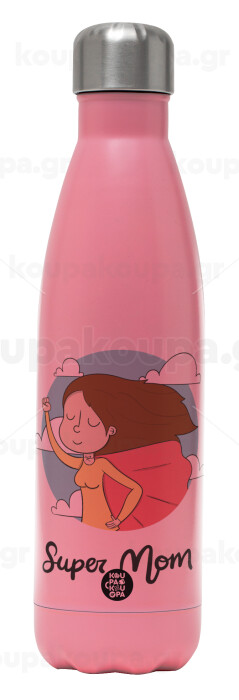 Super mom, Metal mug thermos Pink Mat (Stainless steel), double wall, 500ml