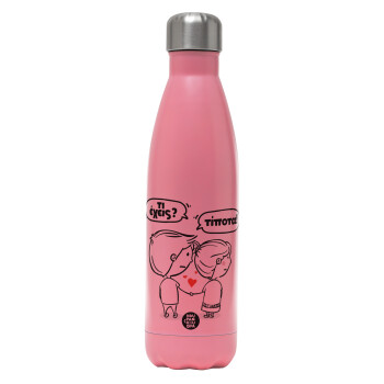 Τι έχεις? Τίποτα!, Metal mug thermos Pink Mat (Stainless steel), double wall, 500ml