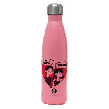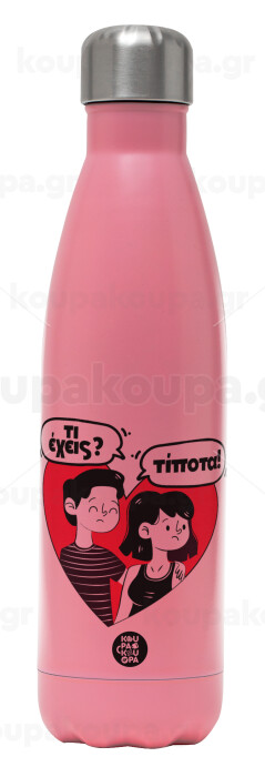 Τι έχεις? Τίποτα!, Metal mug thermos Pink Mat (Stainless steel), double wall, 500ml