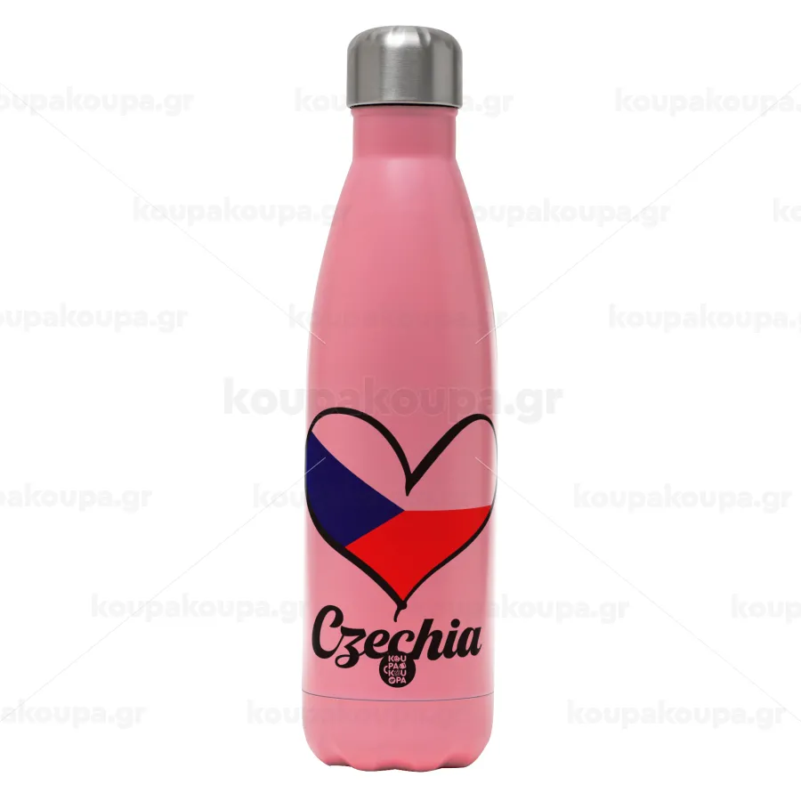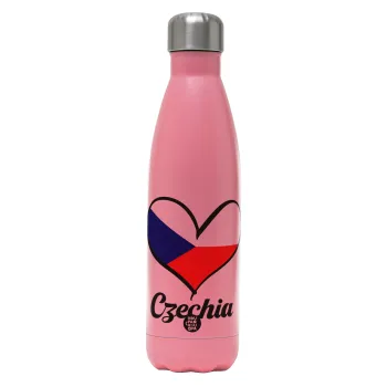Czechia flag, Metal mug thermos Pink Mat (Stainless steel), double wall, 500ml
