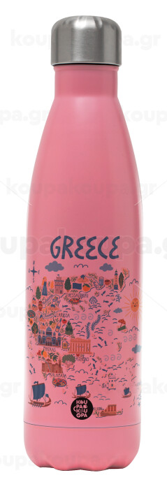 Greek map, Metal mug thermos Pink Mat (Stainless steel), double wall, 500ml