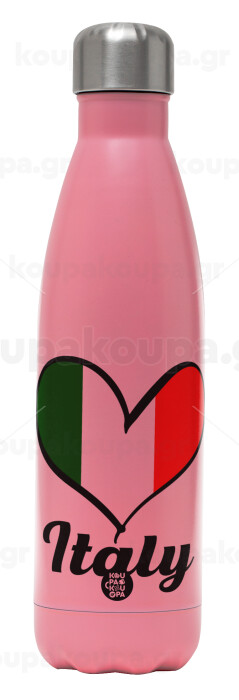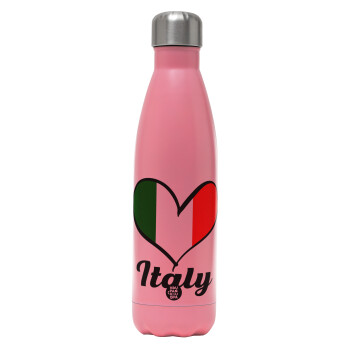 Italy flag, Metal mug thermos Pink Mat (Stainless steel), double wall, 500ml