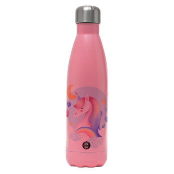 Cute unicorn, Metal mug thermos Pink Mat (Stainless steel), double wall, 500ml