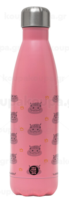 Hippo, Metal mug thermos Pink Mat (Stainless steel), double wall, 500ml