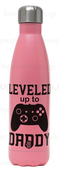 Leveled to Daddy, Metal mug thermos Pink Mat (Stainless steel), double wall, 500ml