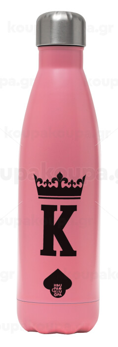 King, Metal mug thermos Pink Mat (Stainless steel), double wall, 500ml