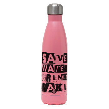 Save Water, Drink RAKI, Metal mug thermos Pink Mat (Stainless steel), double wall, 500ml