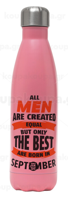 All men are created equal but only the best are born in September, Metal mug thermos Pink Mat (Stainless steel), double wall, 500ml