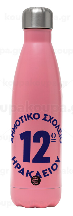 Έμβλημα Σχολικό λευκή, Metal mug thermos Pink Mat (Stainless steel), double wall, 500ml