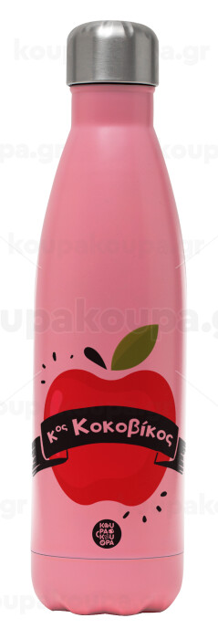 Αναμνηστικό Δώρο Δασκάλου Κόκκινο Μήλο, Metal mug thermos Pink Mat (Stainless steel), double wall, 500ml