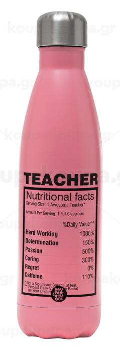teacher nutritional facts, Metal mug thermos Pink Mat (Stainless steel), double wall, 500ml