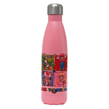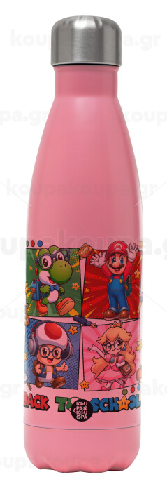 Back to the School Mario & Friends, Metal mug thermos Pink Mat (Stainless steel), double wall, 500ml