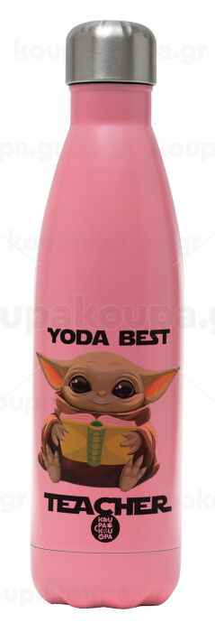 Yoda Best Teacher, Metal mug thermos Pink Mat (Stainless steel), double wall, 500ml