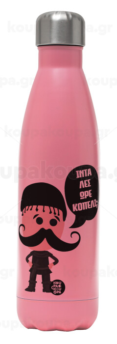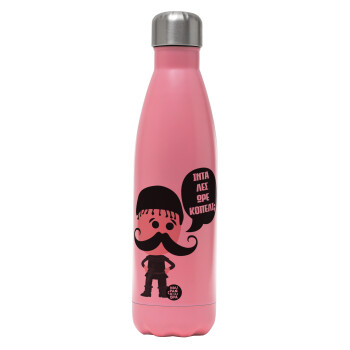 Κρητικός "Ίντα λες ωρέ κοπέλι", Metal mug thermos Pink Mat (Stainless steel), double wall, 500ml