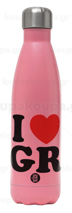 I Love GR, Metal mug thermos Pink Mat (Stainless steel), double wall, 500ml