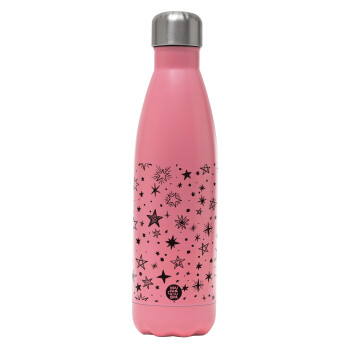 Doodle Stars, Metal mug thermos Pink Mat (Stainless steel), double wall, 500ml
