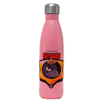 Brawl Stars Crow, Metal mug thermos Pink Mat (Stainless steel), double wall, 500ml