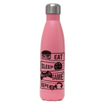 Eat Sleep Game Repeat, Metal mug thermos Pink Mat (Stainless steel), double wall, 500ml