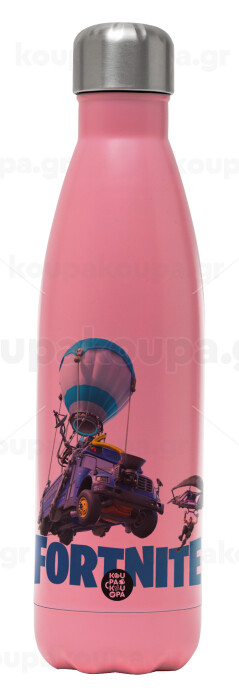 Fortnite Bus, Metal mug thermos Pink Mat (Stainless steel), double wall, 500ml