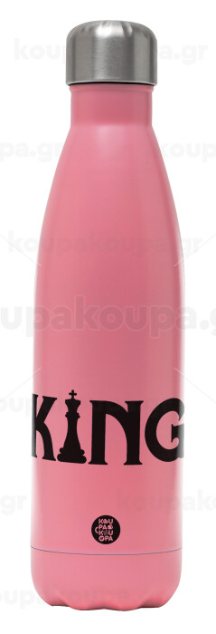 King chess, Metal mug thermos Pink Mat (Stainless steel), double wall, 500ml