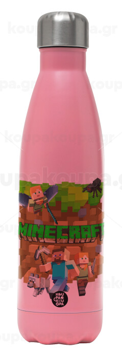 Minecraft characters, Metal mug thermos Pink Mat (Stainless steel), double wall, 500ml