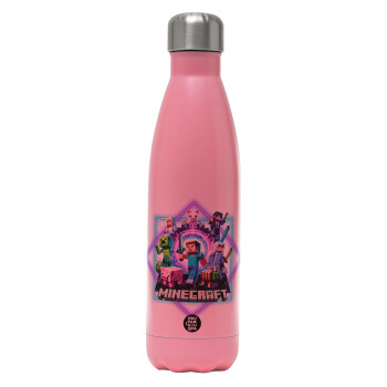 Minecraft Nether Portal, Metal mug thermos Pink Mat (Stainless steel), double wall, 500ml