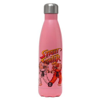 Street fighter, Metal mug thermos Pink Mat (Stainless steel), double wall, 500ml