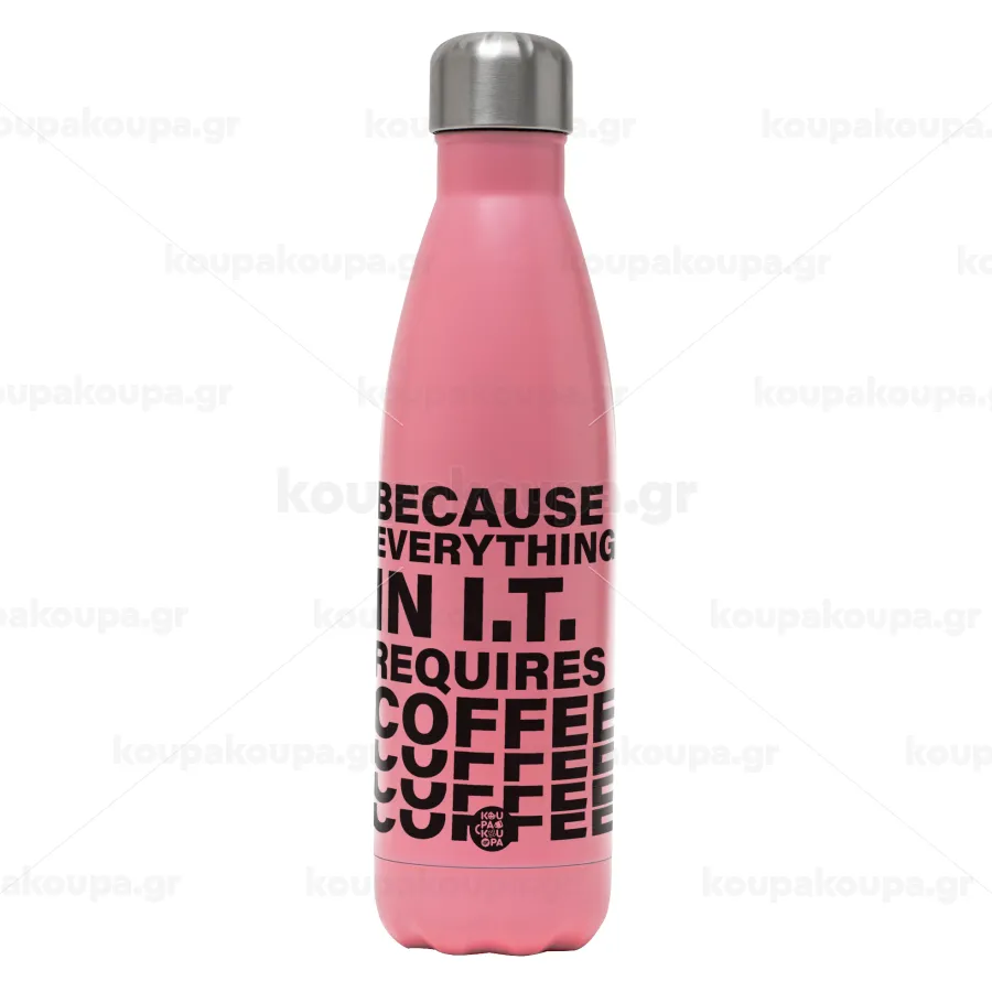 Because everything in I.T. requires coffee, Metal mug thermos Pink Mat (Stainless steel), double wall, 500ml