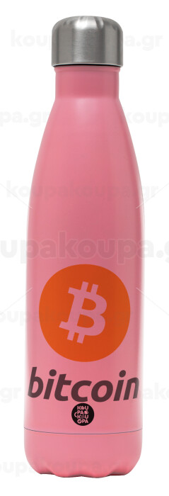 Bitcoin, Metal mug thermos Pink Mat (Stainless steel), double wall, 500ml