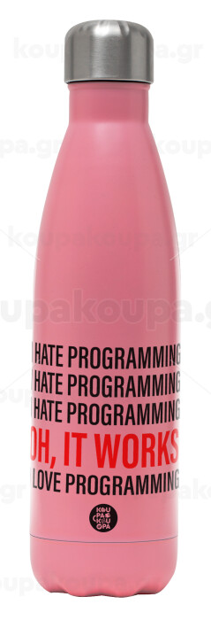 I hate programming!!!, Metal mug thermos Pink Mat (Stainless steel), double wall, 500ml