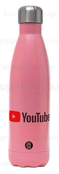 Youtube, Metal mug thermos Pink Mat (Stainless steel), double wall, 500ml