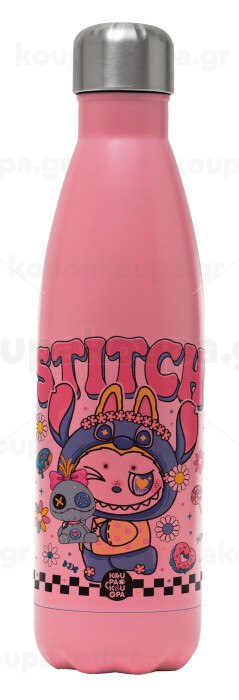 Labubu Stitch, Metal mug thermos Pink Mat (Stainless steel), double wall, 500ml