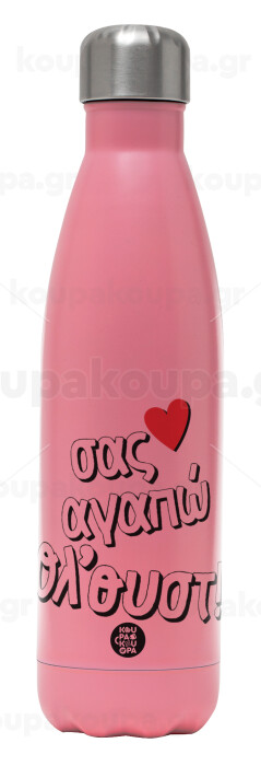Σας αγαπώ όλ'ουστ!, Metal mug thermos Pink Mat (Stainless steel), double wall, 500ml