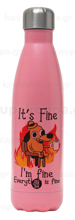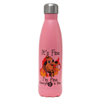 It's Fine I'm Fine Everything Is Fine, Metal mug thermos Pink Mat (Stainless steel), double wall, 500ml