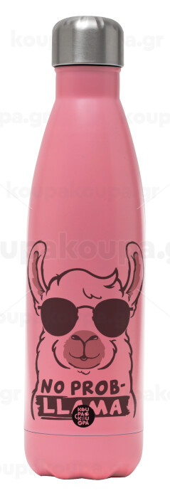 No Prob Llama, Metal mug thermos Pink Mat (Stainless steel), double wall, 500ml