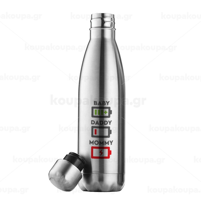 BABY, MOMMY, DADDY Low battery, Inox (Stainless steel) double-walled metal mug, 500ml