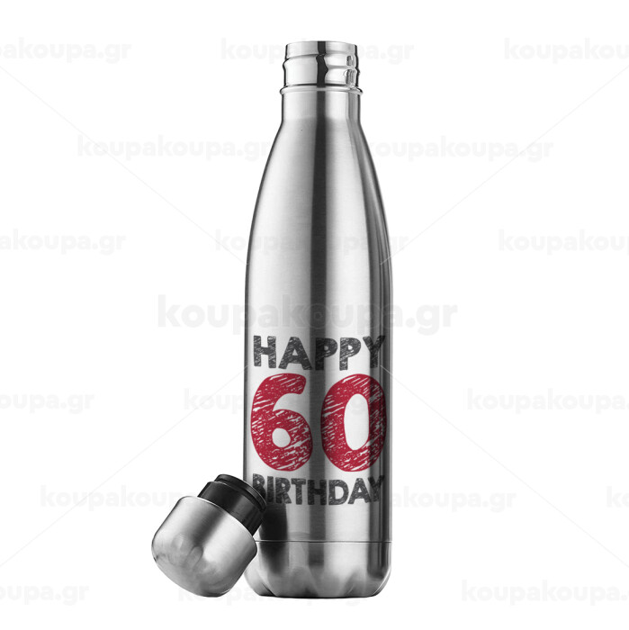 Happy 60 birthday!!!, Inox (Stainless steel) double-walled metal mug, 500ml