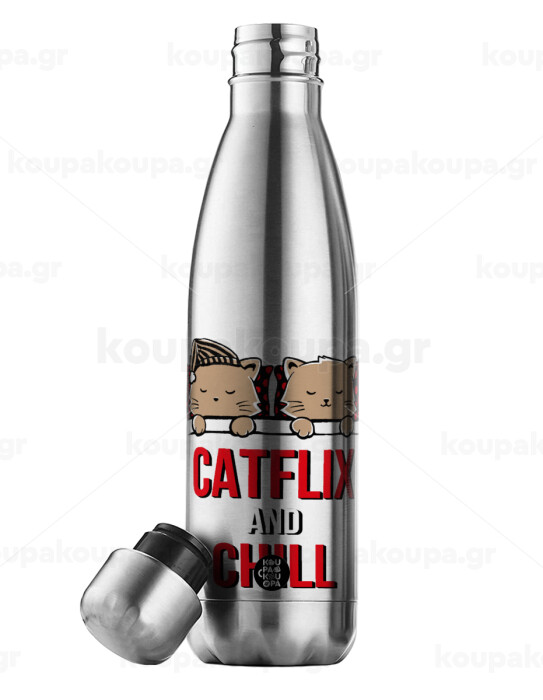 Catflix and Chill, Inox (Stainless steel) double-walled metal mug, 500ml
