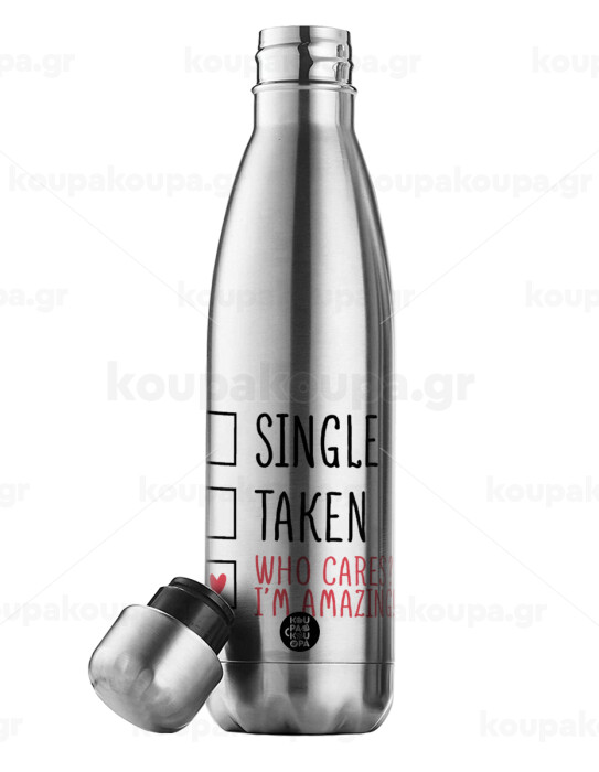 Single, Taken, Who cares i'm amazing, Inox (Stainless steel) double-walled metal mug, 500ml