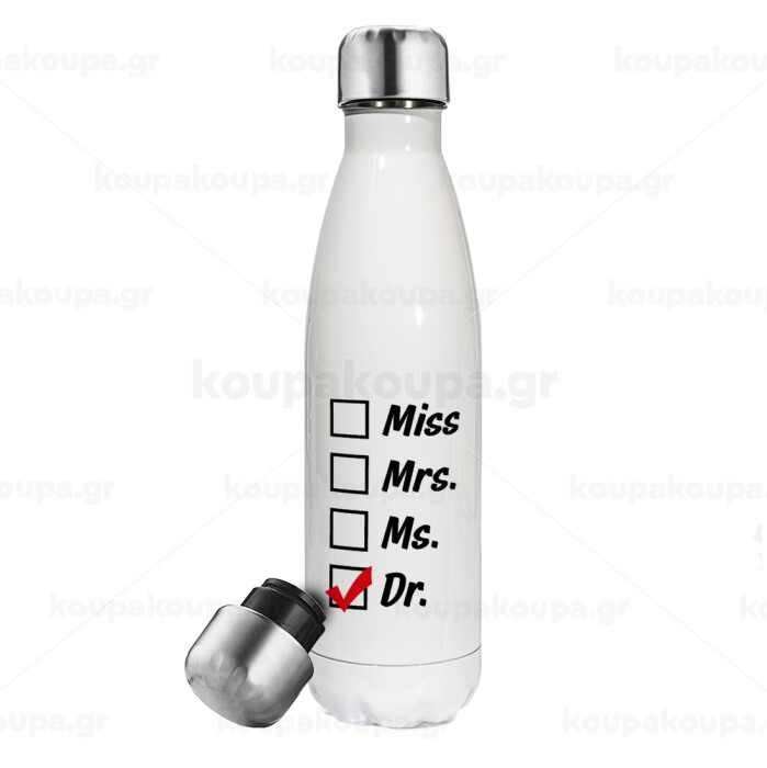 Miss, Mrs, Ms, DR, Metal mug thermos White (Stainless steel), double wall, 500ml