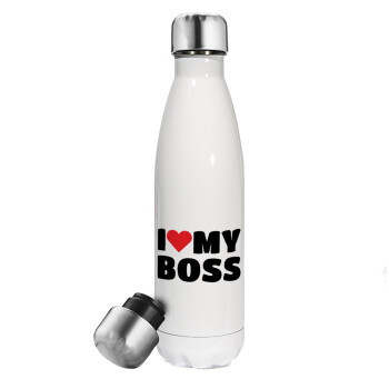 I LOVE MY BOSS, Metal mug thermos White (Stainless steel), double wall, 500ml